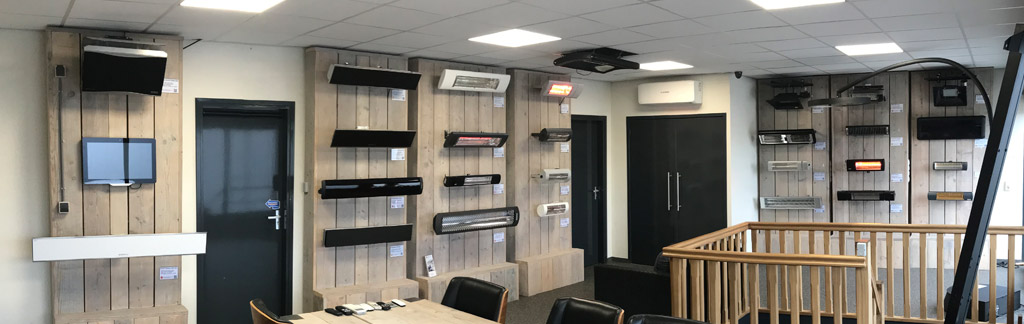 Wij hebben een eigen winkel met een showroom welke uitsluitend op afspraak geopend is. Onze showroom hangt vol met de verschillende werkende terrasheaters / terrasverwarmers die wij op onze webshop hebben staan. U bent van harte welkom om deze heaters te komen bekijken en te ervaren.